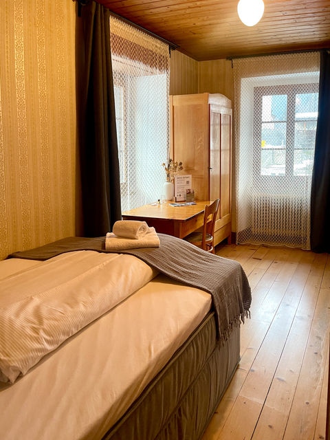 Unseren liebevoll gestalteten Zimmern, die einen Mix aus traditionellem Charme und modernem Komfort im Boutique-Stil bieten, geniessen Sie einen entspannten Rückzugsort nach jedem Abenteuer in der Natur.